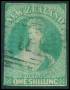 NEW ZEALAND. 1857. 1 sh. blågrøn hard paper uden vm. med større tyndhed. SG. 1800 £