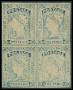 NEW SOUTH WALES. 1885. 2 d. blå nytryk i 4-blok pl. II pos. 17-18/27-28, pos. 27 er retouch fra de originale plader.