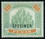 PERAK. 1895. 25 $ grøn/orange med specimen overtryk uden lim. SG. 450 £