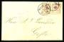 1864. 3 sk. lilla x 2 på brev til Sverige med svenske stempler.