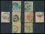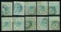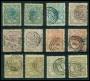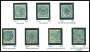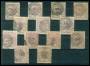 1864-70. Krone/Scepter, sæt; 3 sk. med variant: farveplet under nedre venstre 3 (afa 12v), 16 sk. med kort tk. i N. AFA 4370,-