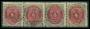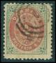 1870. 4 sk. grå/rød i vandret 4-stribe, de 2 venstre mærker med korte takker i nord.
