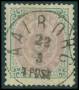 1871. 3 sk. grå/lilla med farvet ovalbånd over det meste af Danmark i ovalen.