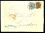 1871. 2 og 8 sk. tofarvet på brev til London, blød lodret fold gennem 8 sk.