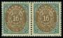 1875. 16 øre grå/brun i par, venstre mærke er postfrisk og med ovalfejl: Plet til højre for 16.