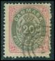 1875. 20 øre rød/grå tryk 6 pos. B26. Attest LN.