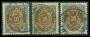 1875. 16 øre grå/brun x 3 med deform s-ramme og lille brun vandret spies i syd.
