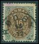 1875. 16 øre grå/brun med variant: Farveløs plet foran sidste A i Danmark.