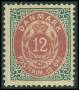 1875. Tofarvet, 12 Øre, grå/rød. AFA: 350,-