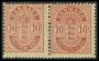 1885. 10 øre rød i par med små og store hjørnetal. AFA 5000,-