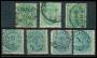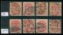 1884-95. 10 øre rød x 8 med ramme varianter.
