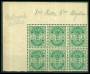 1895. 5 øre grøn i 6-blok, hvor pos. 1 og 10 har vm. arkrand.