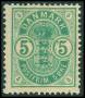 1882. 5 øre grøn små tal. AFA 1800,-