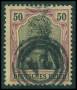 NUMMERSTEMPEL. 1905-19. 50 pf. violet/sort, laksefarvet, Germania. Annulleret "24", Helsingør.