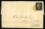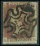 1840. 1 d. sort N - B med rødt malteserstp. sendt til Leeds.