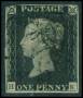 1840. 1 d. grey-black (Worm-plale) B-I, bredrandet. SG. (3) 500 £