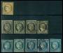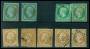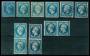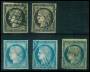 1849. Ceres, 10 Centimes, oliven og 20 Centimes, sort samt 25 Centimes, blå. Indstikskort med 10 stemplede mærker.