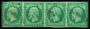 1853. 5 c. grøn i vandret 4-stribe, venstre mærke er let beklippet. Yvert 700 €