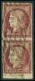 1849. Ceres, 1 Franc, karmin (lodret parstykke). Flot fuldrandet objekt. Ukendt signatur på bagsiden. AFA: 16.000+