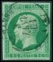 1849. Ceres, 15 Centimes, grøn. Flot fuldrandet eksemplar. AFA: 10.000