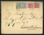 1886. Victoria, ½ Penny, grøn og 1 Penny, rød (par) samt 2½ Penny, ultramarin. Brev sendt fra GIBRALTAR 6.MR.03 (A26 Duplex) til Wien i Østrig. Ankomststemplet WIEN 12.3.03.