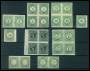 FORSORGSMRK. 1917-46. Planche med diverse inkl. overtryks varianter.