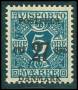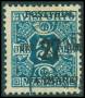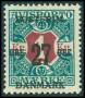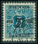 1918. 27/1 kr. blågrøn/rød med lavt overtryk.