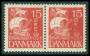 1927. 15 øre rød i par med variant. ØPE. AFA 2040,-