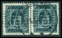 1926. 7/20 øre mørkblå i par med forskudt overtryk mod venstre.