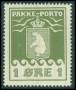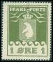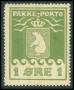 1915. 1 øre olivengrøn takket 3 sider. AFA 1800,-