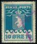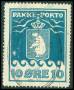 1910. 10 øre blå takket 3 sider. AFA 4500,-