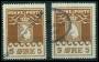 1924-28. 5 øre brun tryk 2 og 3. AFA 1900,-