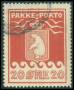 1915. 20 øre matrød kartonpapir. AFA 1400,-