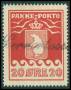 1915. 20 øre matrød tryk 1 med beskrevet variant.