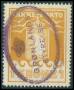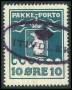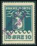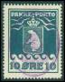 1937. 10 øre grønblå med LUX violet skjold stp. Attest LN.