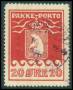 1937. 20 øre rød på klip med linie stp. Den Kgl. Grønlandske Handel Egedesminde.