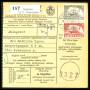 1950. Gustav Holm, 2 Kroner, rød og 5 Kroner, grå. Adressekort for 1 pakke sendt fra SUKKERTOPPEN KANGAMIUT 19.1.1971 til København.