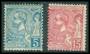1891. Fyrst Albert I, 5 Centimes, blå (2) og 15 Centimes, rød. Brev sendt fra MONTE-CARLO 1.AVRIL.95 til Vohwinkel i Tyskland. Ankomststemplet VOHWINKEL 3.4.95.