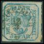 1862-64. 30 p. blå, Oksehoved. AFA 600,-