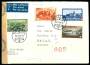 1936. Landskaber, 5 Centimes, grøn og 10 Centimes, rødlilla samt 15 Centimes, orange. Brev sendt fra PESEUX 1.IV.43 til Reykjavik på ISLAND. Åbnet af den engelske censur.