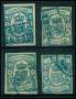OLDENBURG. 1861. 1 gr. blå og matblå. 4 stk. med småfejl. AFA 8800,-