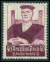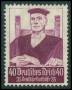 1936. 6 pf. grøn med variant: Trappe ved venstre øre. Mi. (604 III)