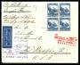 1935. 25 pf. blå i 4-blok på katapultpostbrev, lille rift i nord.
