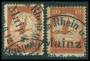 FLYPOST. 1912. 10-20 pf. rødbrun, Flugpost am Rhein. 2 stemplede mærker. Mi. 110,- €