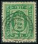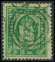 1871. 16 sk. grøn linietakket, repareret i øvre venstre hjørne. Udtalelse LN. AFA 4000,-