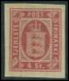 1871. 4 sk. rød linietakket på klip, rust på takker. AFA 4000,-