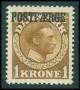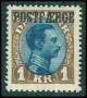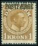 1919. 1 kr. gulbrun med spejlvendt vm. ikke prissat i AFA.