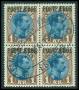 1922. 1 kr. brun/blå i 4-blok. AFA 2000,-+