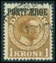 1922-26. 1 kr. brun/blå 3-stribe stp. Fanø-Esbjerg.