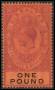 1912. 1 £ violet/sort, rødlig. AFA 3400,-